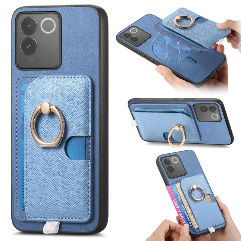 Θήκη τηλεφώνου MagSafe για vivo S17e / iQOO Z7 Pro / T2 Pro, Δερμάτινη με Σταυρωτό Σχέδιο, Εισαγωγή Κάρτας στο Πλαϊνό Μέρος (Κίτρινο)