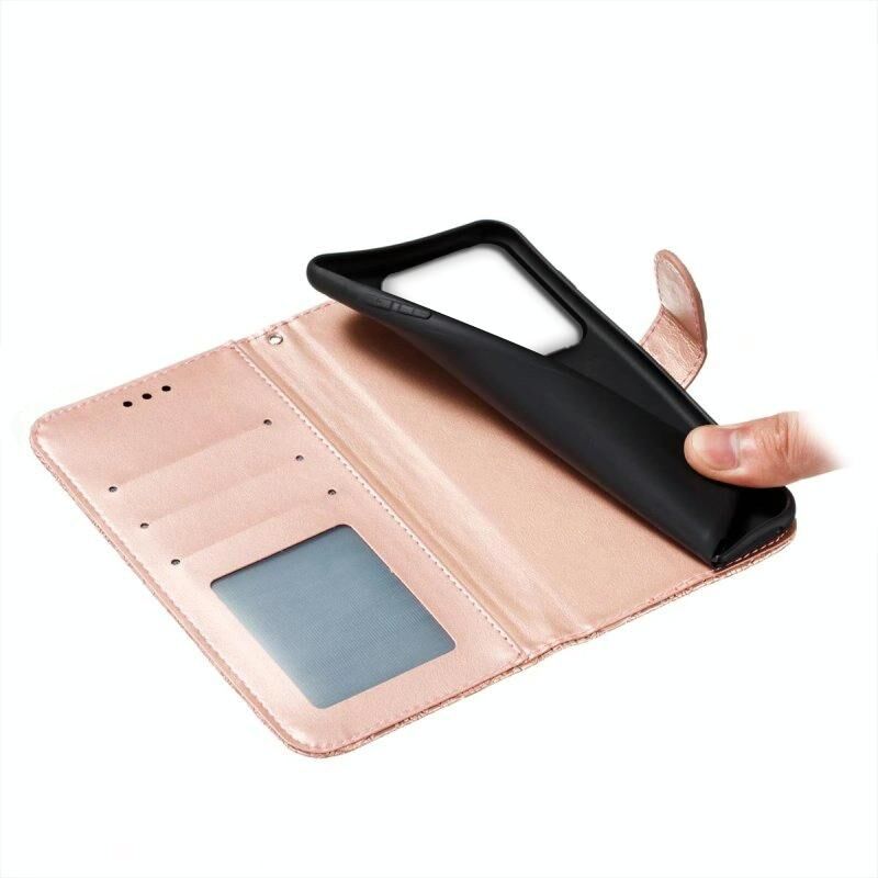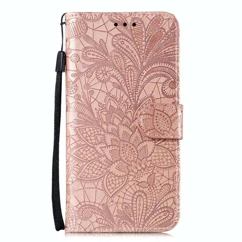 8. Σχεδιασμός με ανάγλυφο λουλούδι από δαντέλα, Η θήκη είναι κατασκευασμένη από προσεκτικά επιλεγμένο δέρμα που της δίνει μια εκλεπτυσμένη και πολυτελή εμφάνιση και αίσθηση.