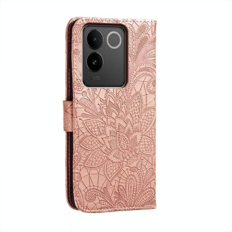 Για vivo S17E Lace Flower ανάγλυφο Flip υπόθεση τηλεφώνου δέρμα (Rose Gold)