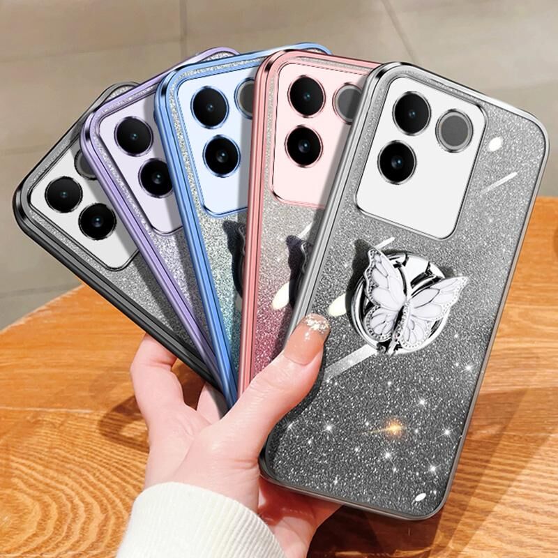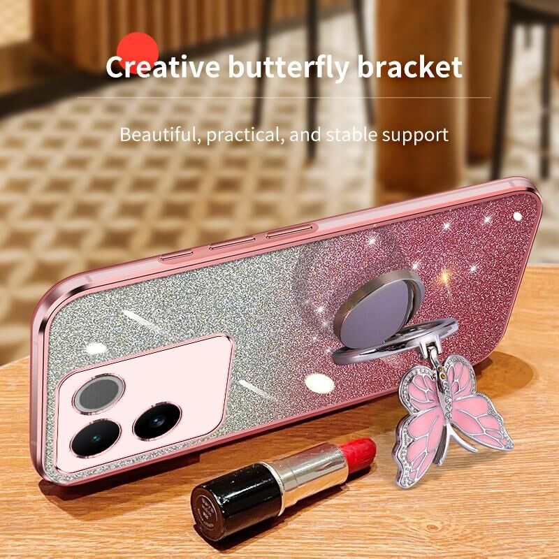 Θήκη τηλεφώνου TPU για vivo S17e με επιμετάλλωση, διαβαθμισμένη λάμψη, σχέδιο πεταλούδας (Ροζ)
