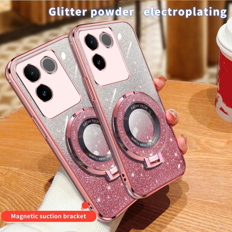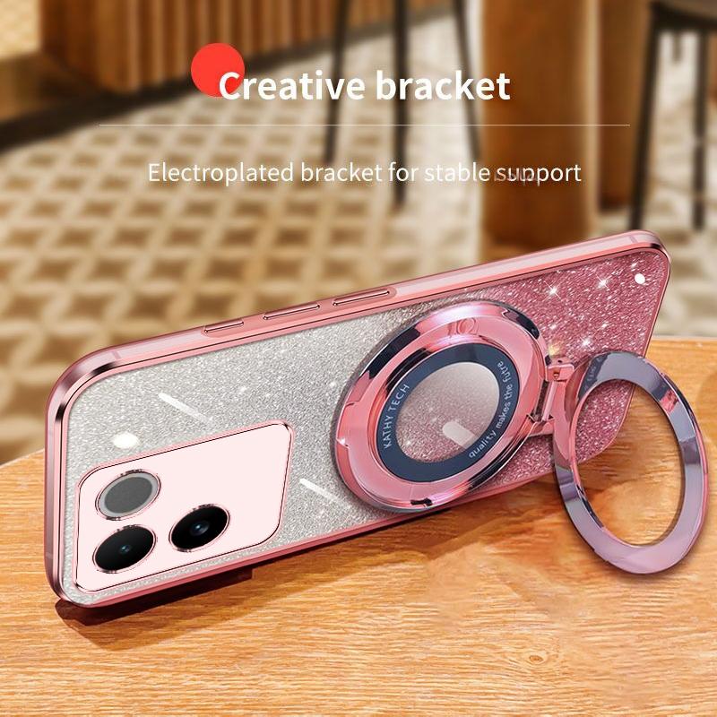 For vivo S17e Plated Gradient Glitter Round Holder TPU Phone Case(Purple)