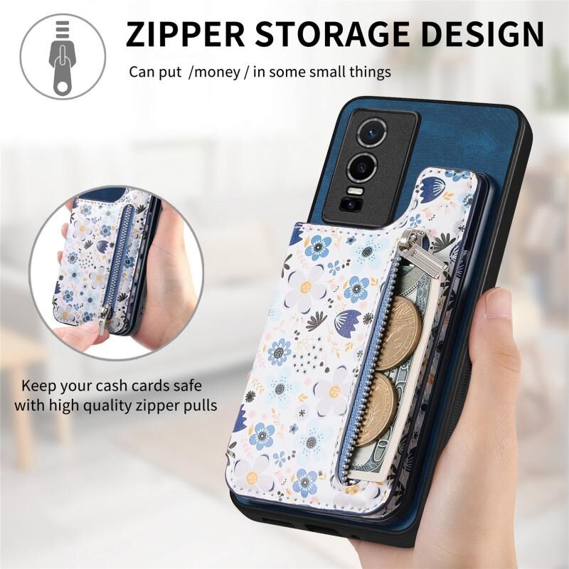 Για vivo S17e / V29e Ρετρό ζωγραφισμένο φερμουάρ πορτοφόλι πίσω υπόθεση τηλεφώνου (Μπλε)