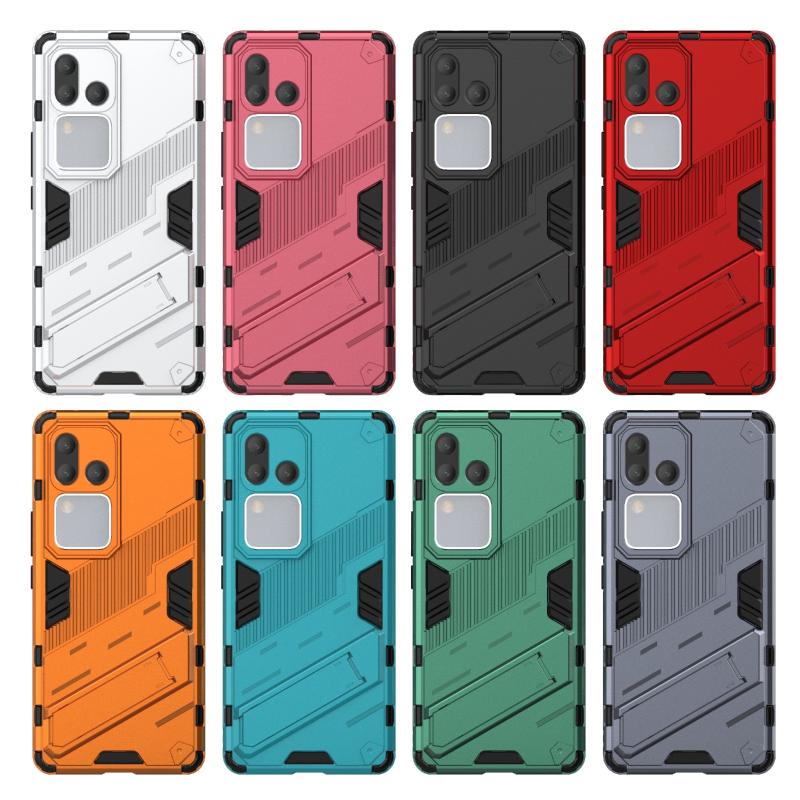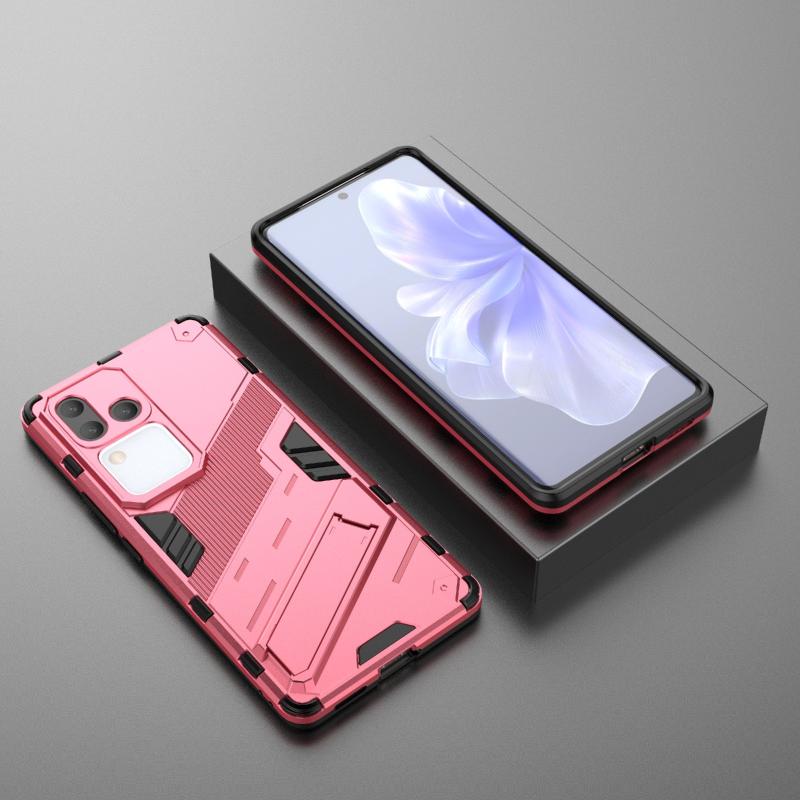 For vivo S18 5G Punk Armor 2 in 1 PC + TPU Phone Case with Holder(Light Red)