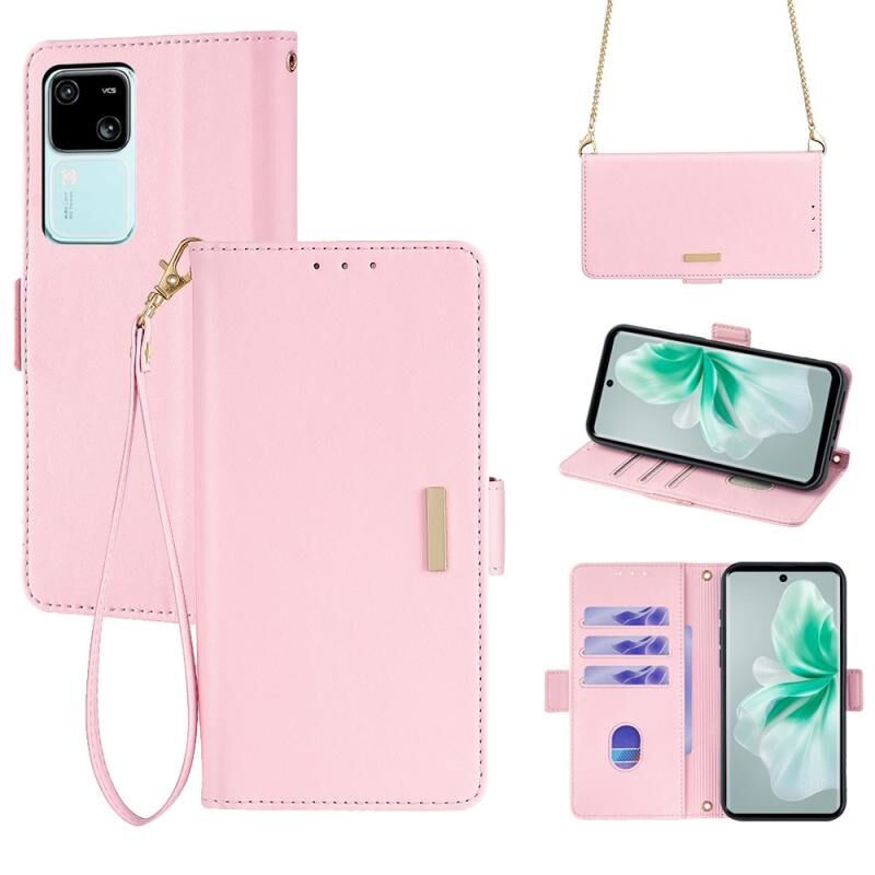 For vivo S18 5G / S18 Pro 5G Crossbody Chain Leather Phone Case(Pink)