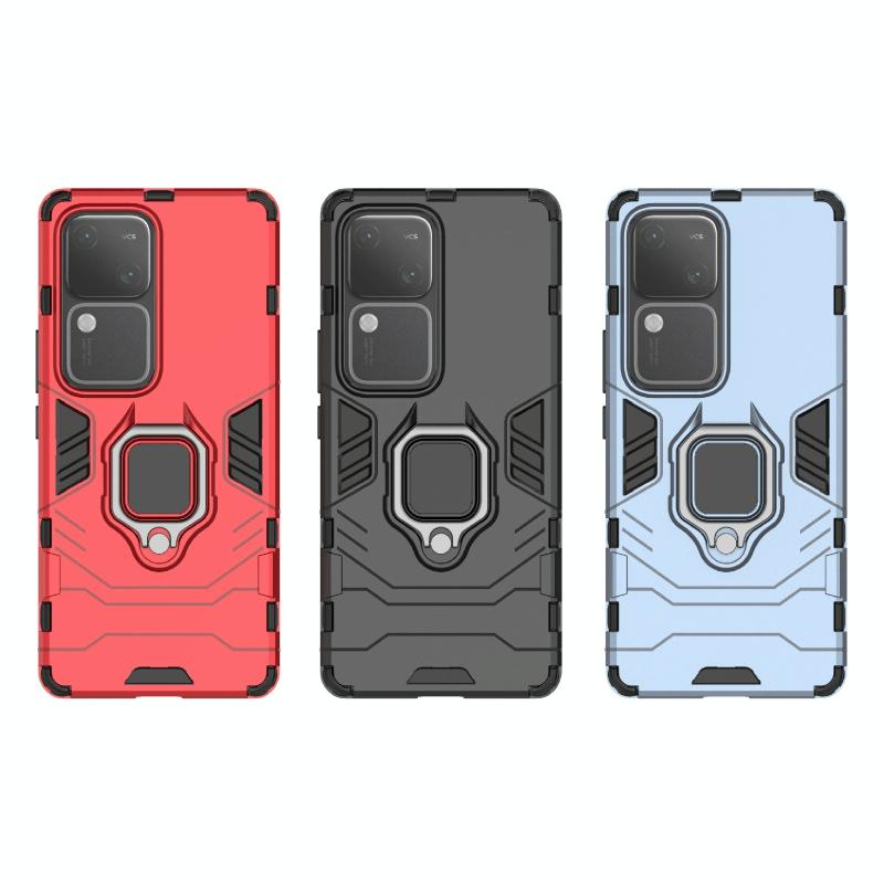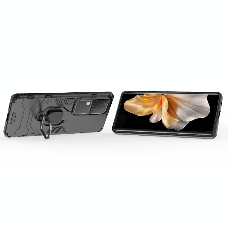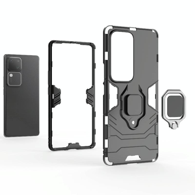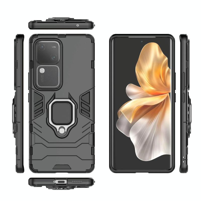 For vivo S18 5G Shockproof PC + TPU Holder Phone Case(Black)