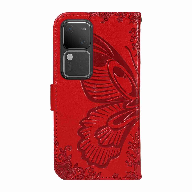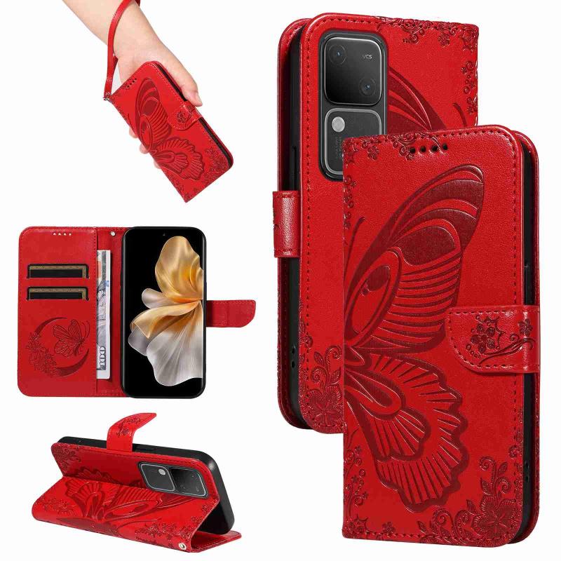 For vivo S18 5G Swallowtail Butterfly Embossed Leather Phone Case(Red)