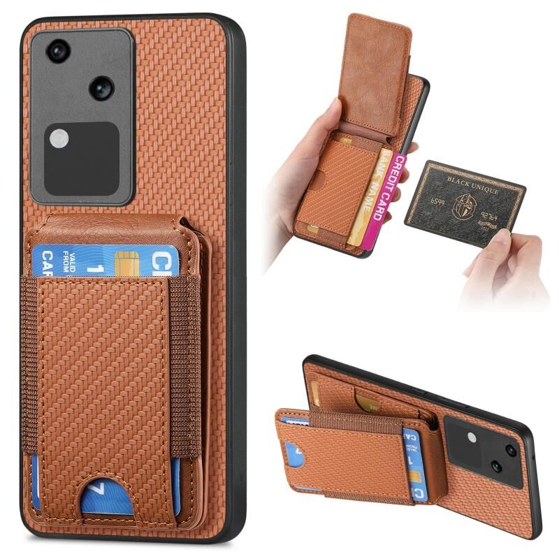 Θήκη τηλεφώνου για vivo S18 Carbon Fiber, κάθετη, τύπου πορτοφολιού με βάση στήριξης (Καφέ)