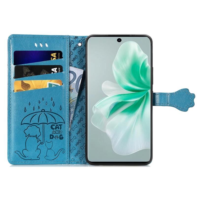 Θήκη τηλεφώνου vivo S18 με ανάγλυφο σχέδιο γάτας και σκύλου από δέρμα (Χρυσορόδινο)