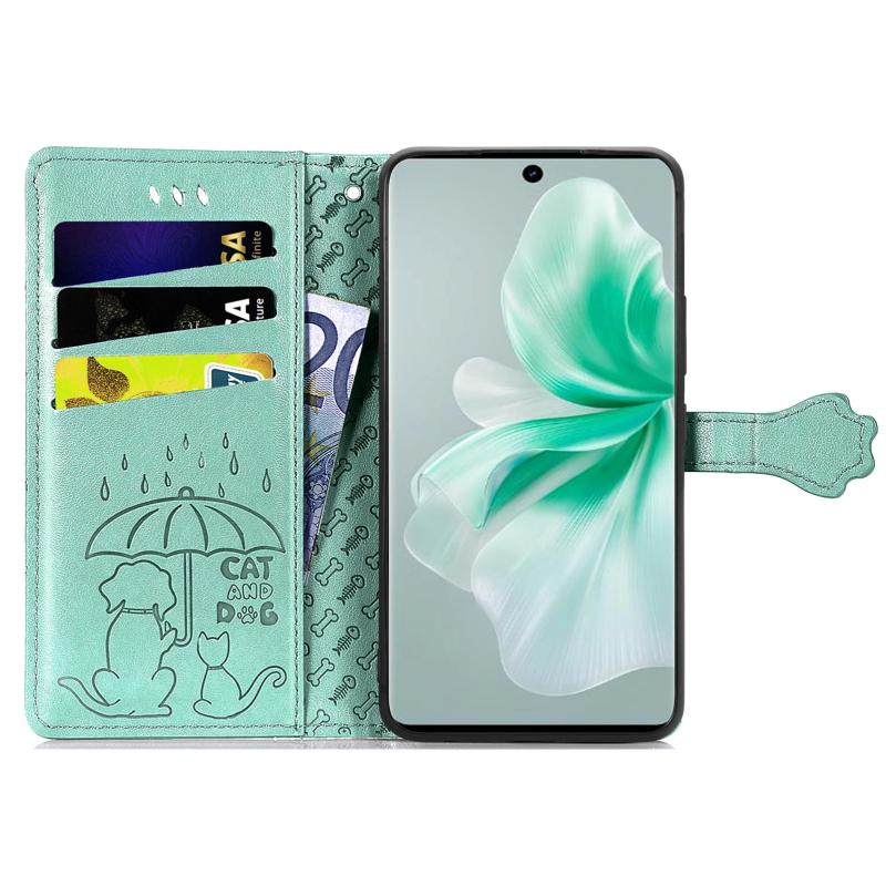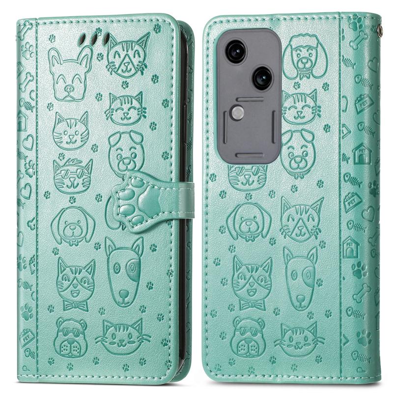 For vivo S18 Cat and Dog Embossed Leather Phone Case(Green)