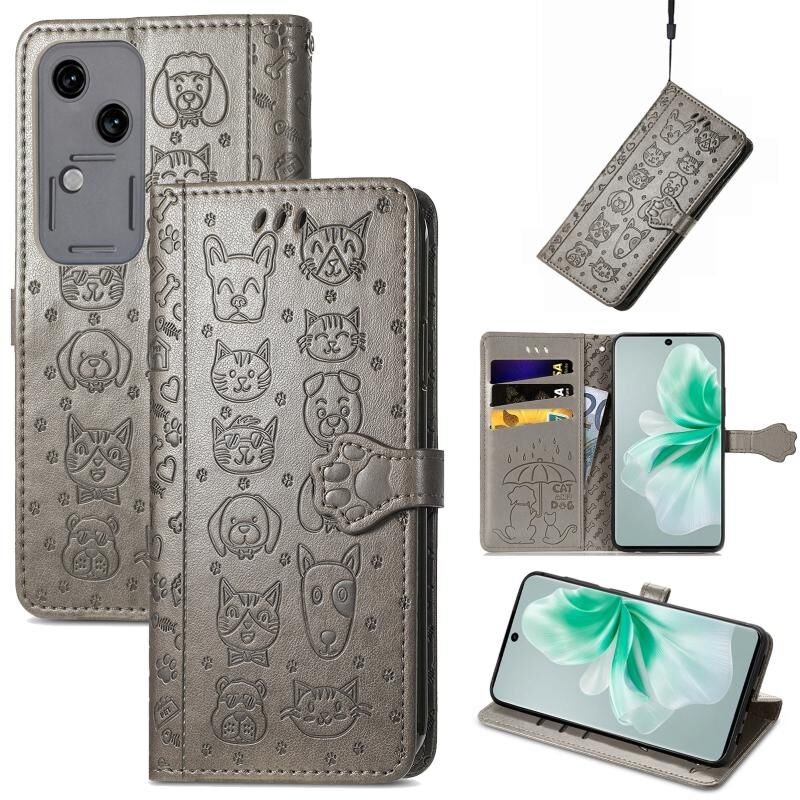 Θήκη τηλεφώνου vivo S18 με ανάγλυφο σχέδιο γάτας και σκύλου από δέρμα (Χρυσορόδινο)