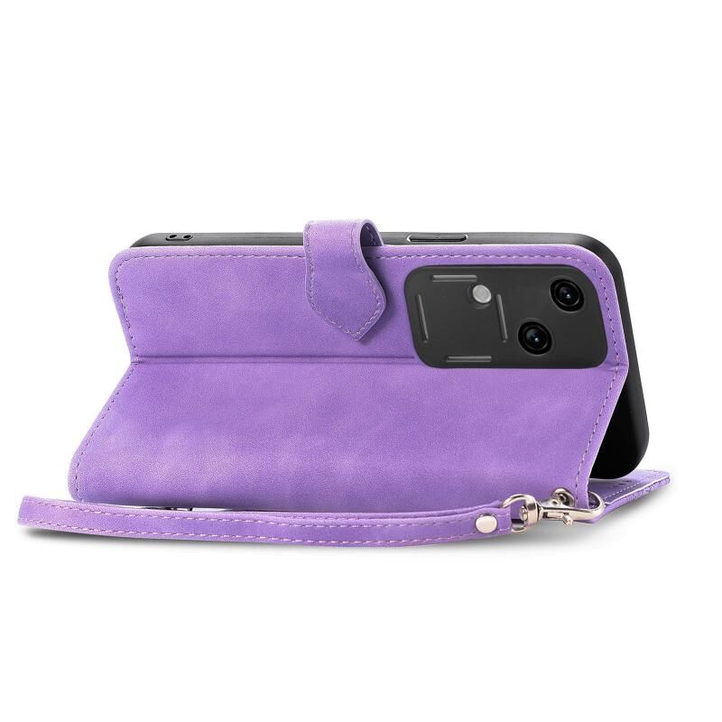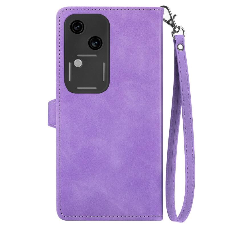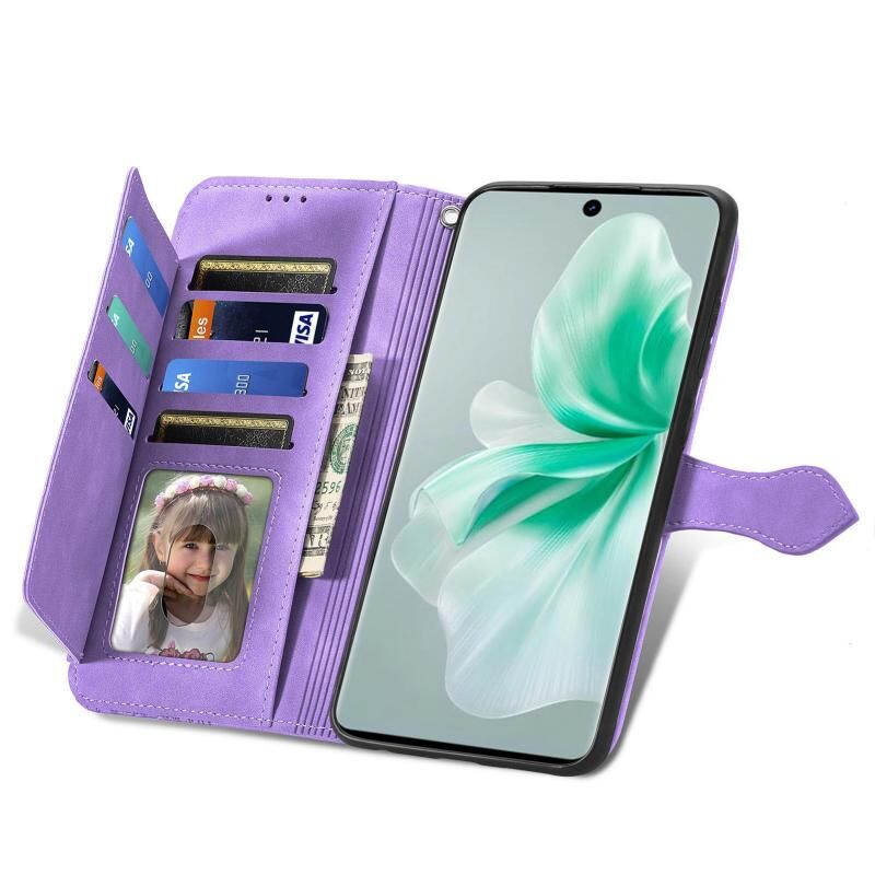 Για vivo S18 ανάγλυφο λουλούδι φερμουάρ δερμάτινη θήκη τηλεφώνου (Μωβ)
