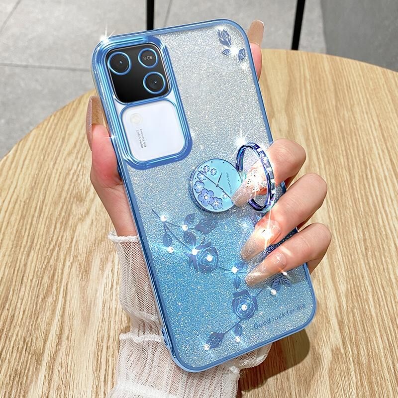 Για το vivo S18 Gradient Glitter Glitter Immortal Flower Ring All-inclusive τηλέφωνο υπόθεση (ροζ)