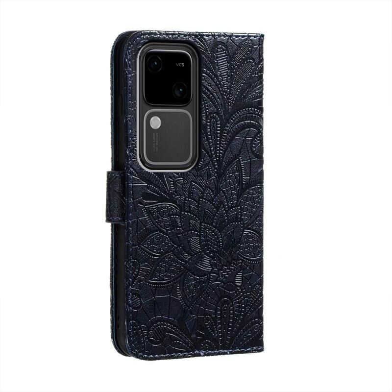 Για vivo S18 Lace λουλούδι ανάγλυφο Flip υπόθεση δερμάτινο τηλέφωνο (σκούρο μπλε)