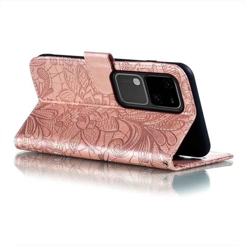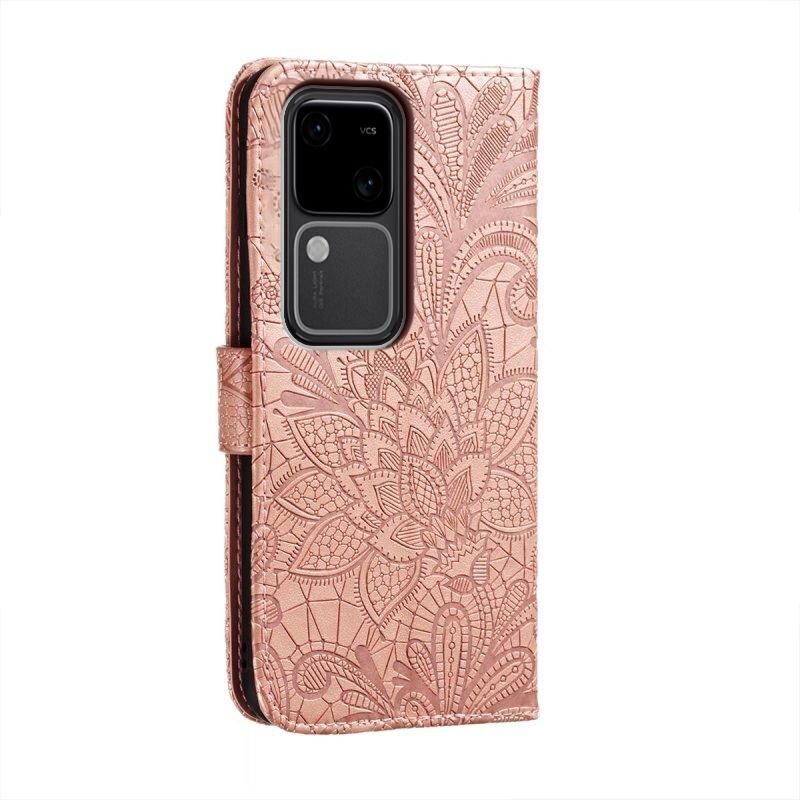 Για το vivo S18 Lace Flower ανάγλυφο Flip δερμάτινη θήκη τηλεφώνου (Rose Gold)