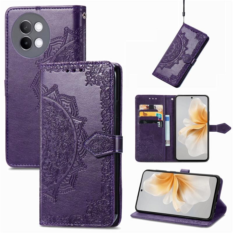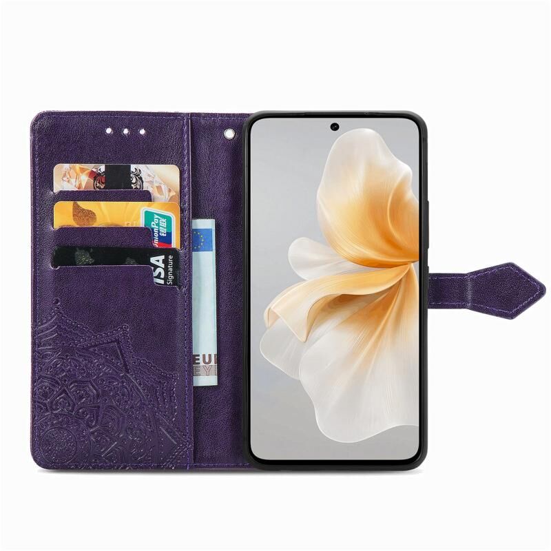 Για vivo S18 Mandala λουλούδι ανάγλυφο δέρμα υπόθεση τηλεφώνου (μωβ)