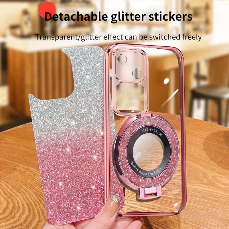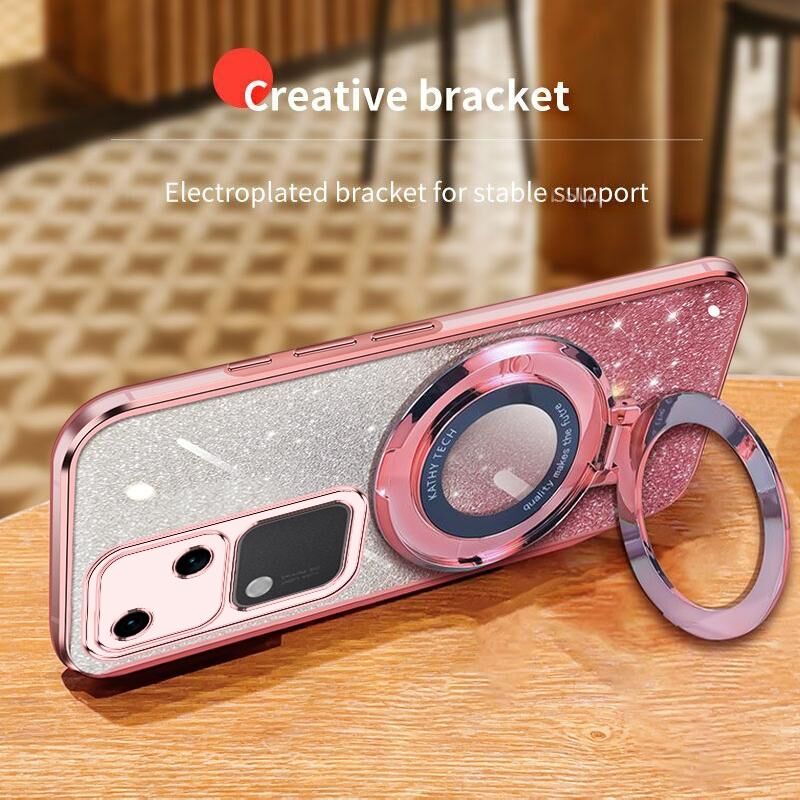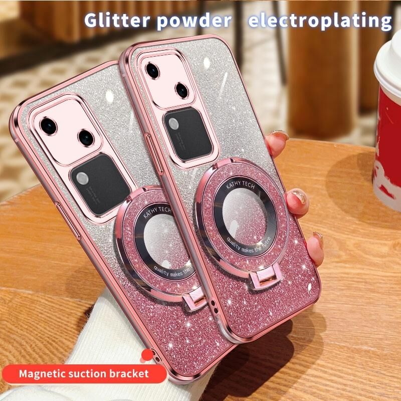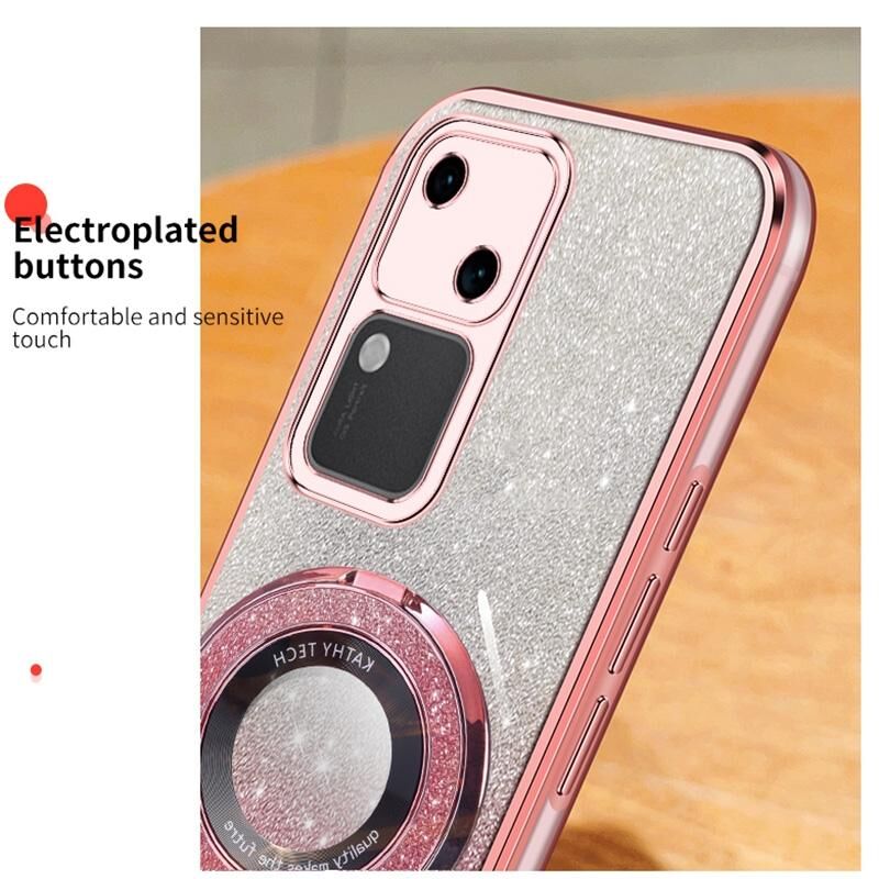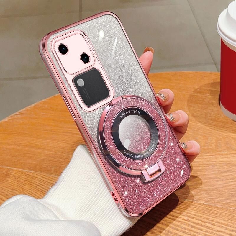 Θήκη τηλεφώνου TPU για vivo S18 με επιμετάλλωση, διαβαθμισμένη λάμψη, στρογγυλή βάση (Ροζ)