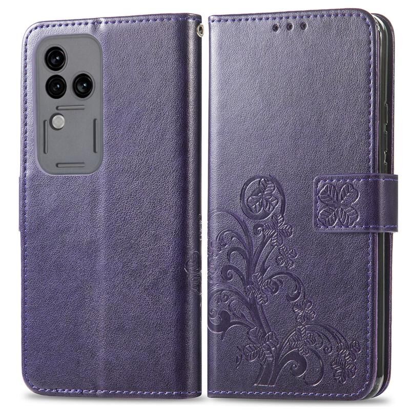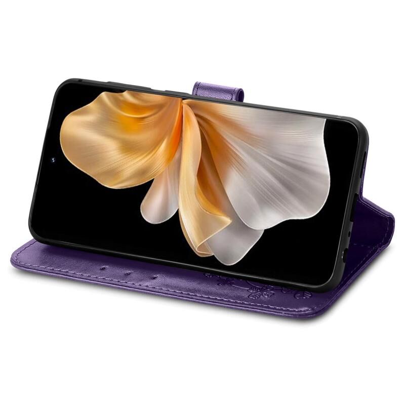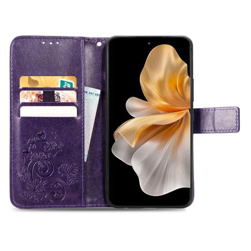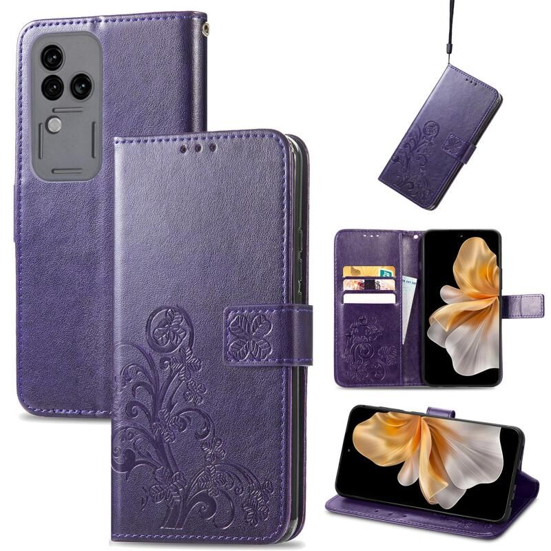 Για το vivo S18 Pro τετράφυλλο κούμπωμα ανάγλυφη δερμάτινη θήκη τηλεφώνου (Μωβ)