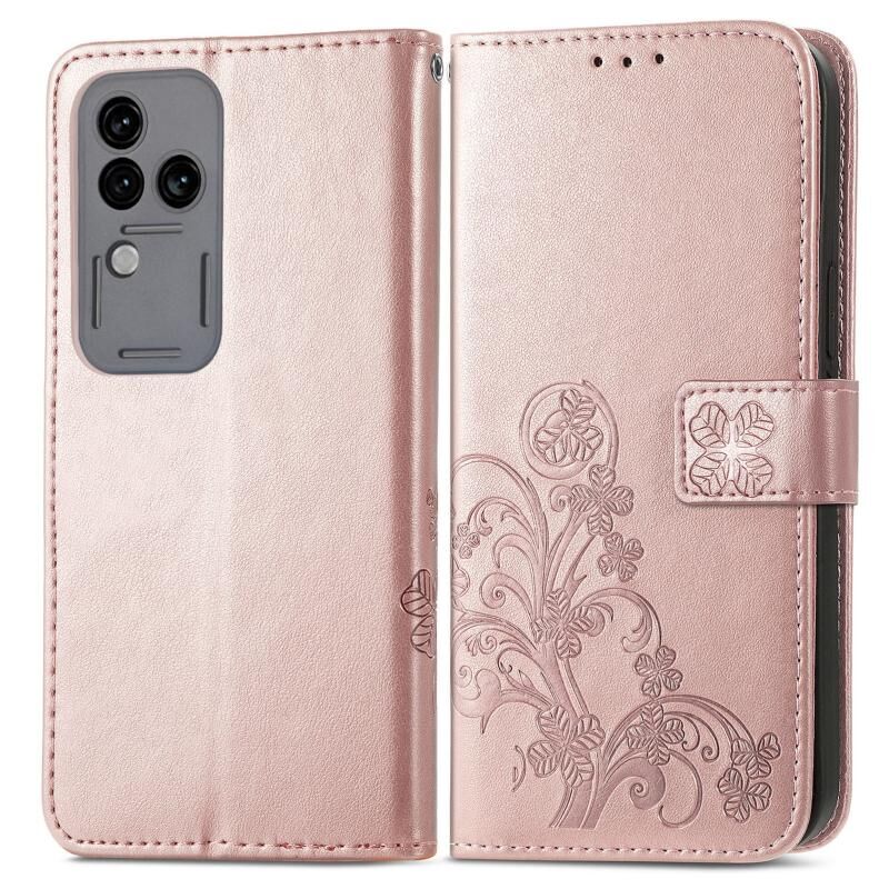 Για το vivo S18 Pro τετράφυλλο κούμπωμα ανάγλυφη δερμάτινη θήκη τηλεφώνου (Rose Gold)
