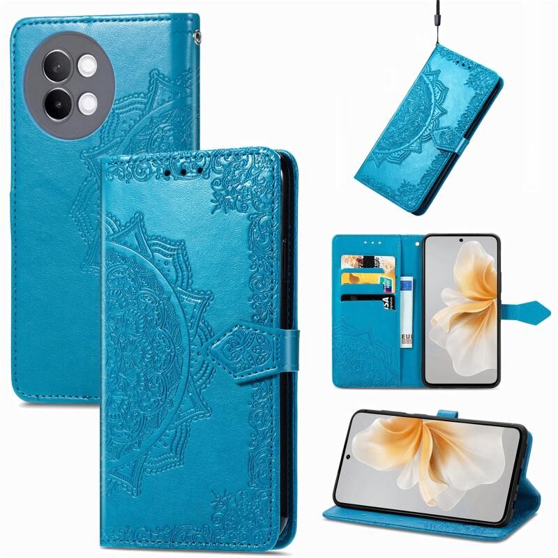 Για vivo S18 Pro Mandala λουλούδι ανάγλυφο δέρμα υπόθεση τηλεφώνου (μπλε)