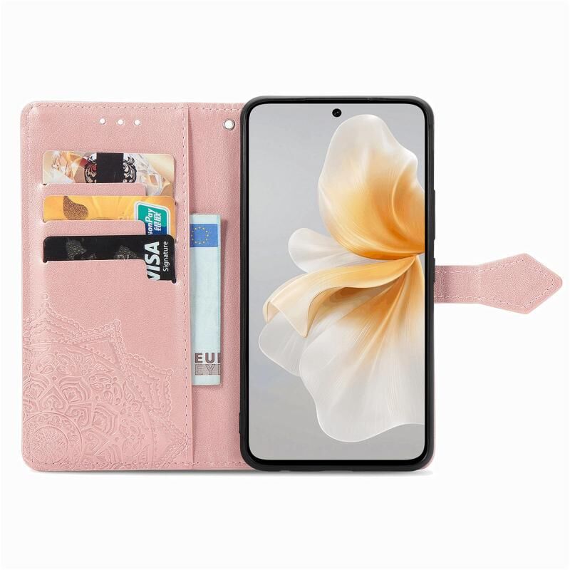 Για το vivo S18 Pro Mandala λουλούδι ανάγλυφο δερμάτινη θήκη τηλεφώνου (Rose Gold)