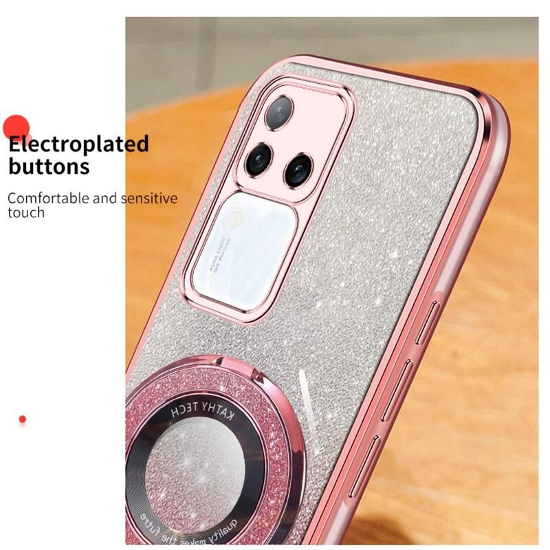 Θήκη τηλεφώνου TPU για vivo S18 Pro με επιμετάλλωση, διαβαθμισμένη λάμψη, στρογγυλή βάση (ρόζ)