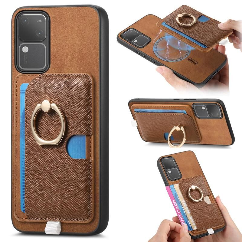 Θήκη τηλεφώνου MagSafe για vivo S18 / S18 Pro 5G, Ρετρό Δερμάτινη με Σταυρωτό Σχέδιο και Ενσωματωμένη Θήκη Κάρτας στο Πλαϊνό Μέρος (Κίτρινο)