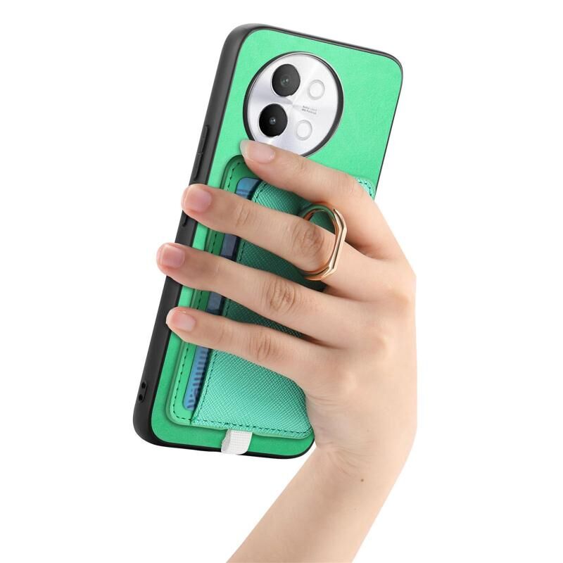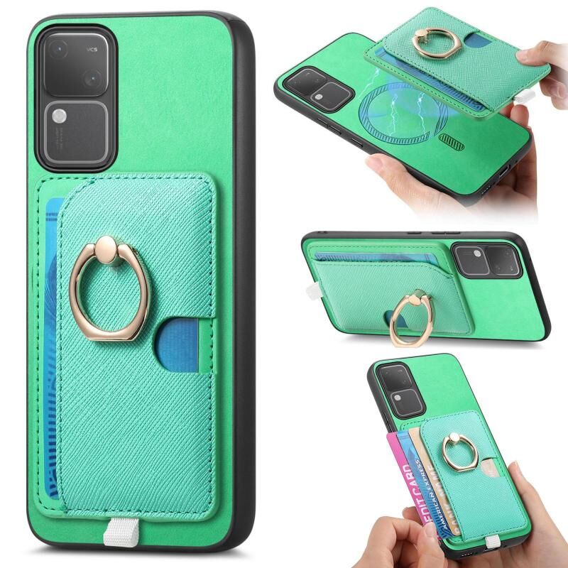 Θήκη τηλεφώνου MagSafe για vivo S18 / S18 Pro 5G, Ρετρό Δερμάτινη με Σταυρωτό Σχέδιο και Ενσωματωμένη Θήκη Κάρτας στο Πλαϊνό Μέρος (πράσινο)