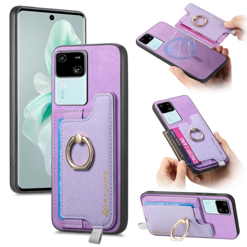 Θήκη τηλεφώνου για vivo S18 / S18 Pro 5G, δερμάτινη με σταυρωτό σχέδιο, μαγνητική υποστήριξη Magsafe, θήκη κάρτας (Ροζ)