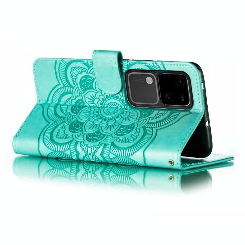 Για vivo S18 Sun Mandala ανάγλυφο μοτίβο τηλέφωνο δερμάτινη θήκη (πράσινο)