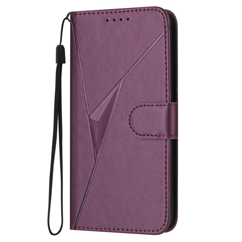 Για vivo S18 Τρίγωνο μοτίβο πόρπη κούμπωμα δερμάτινη θήκη τηλεφώνου (Σκούρο μωβ)