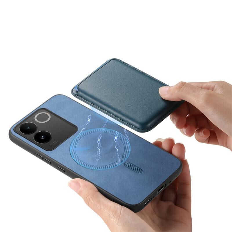 Για vivo S18e 5G Retro Magsafe κάρτα τσάντα PU πίσω κάλυμμα τηλέφωνο υπόθεση (Μπλε)