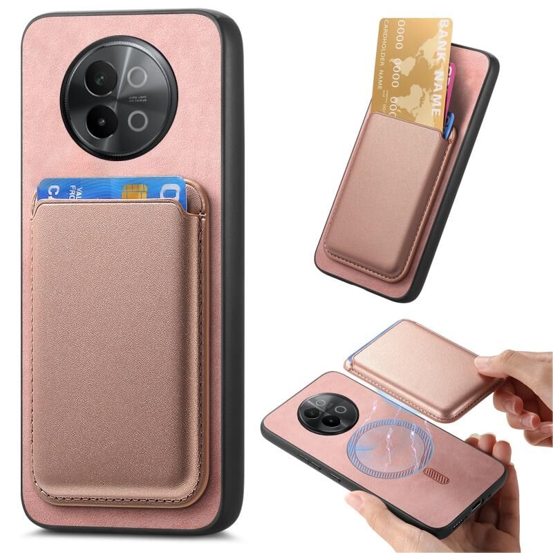 Για vivo S18e 5G Retro Magsafe κάρτα τσάντα PU πίσω κάλυμμα τηλέφωνο υπόθεση (ρόζ)
