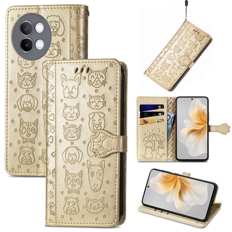 Θήκη τηλεφώνου από δέρμα με ανάγλυφο σχέδιο γάτας και σκύλου για vivo S18e (Χρυσό ροζ)