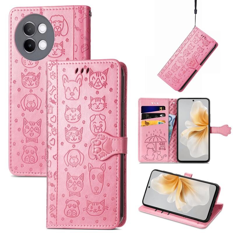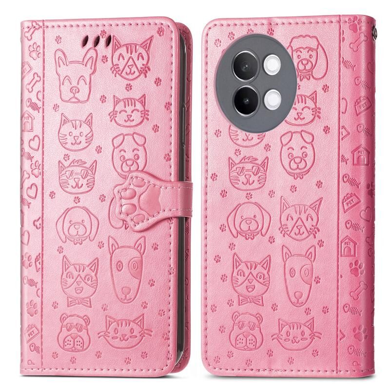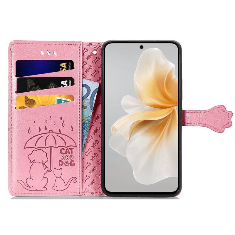 Θήκη τηλεφώνου από δέρμα με ανάγλυφο σχέδιο γάτας και σκύλου για vivo S18e (Χρυσό ροζ)