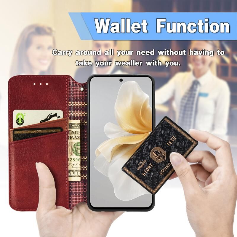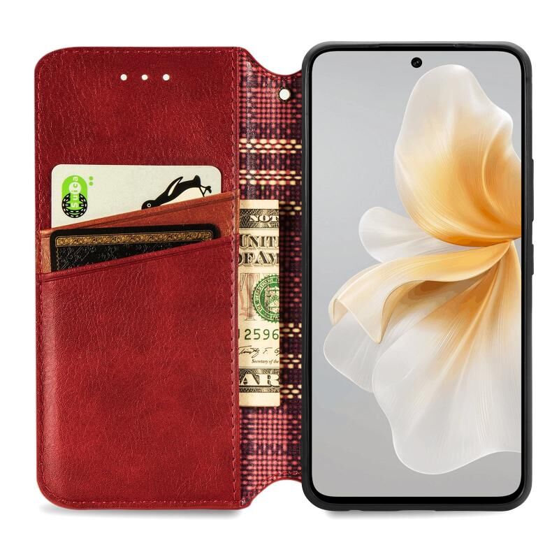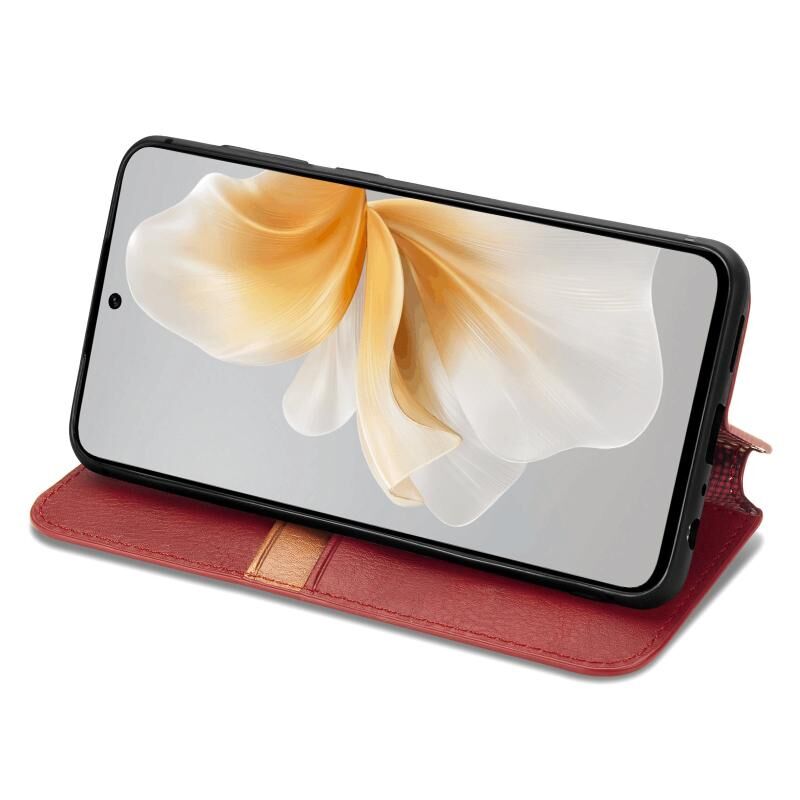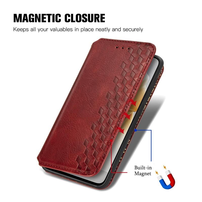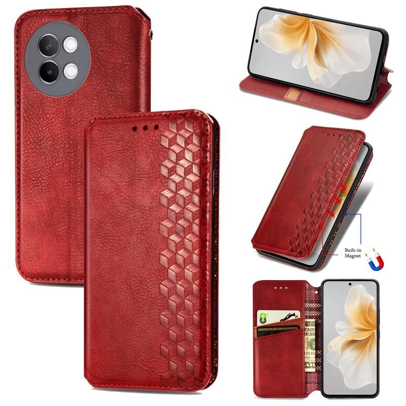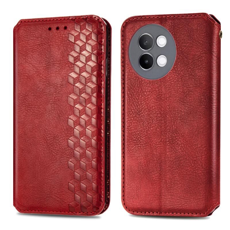 Για vivo S18e κυβικό πλέγμα πιεσμένο μαγνητικό δέρμα τηλέφωνο υπόθεση (Κόκκινο)