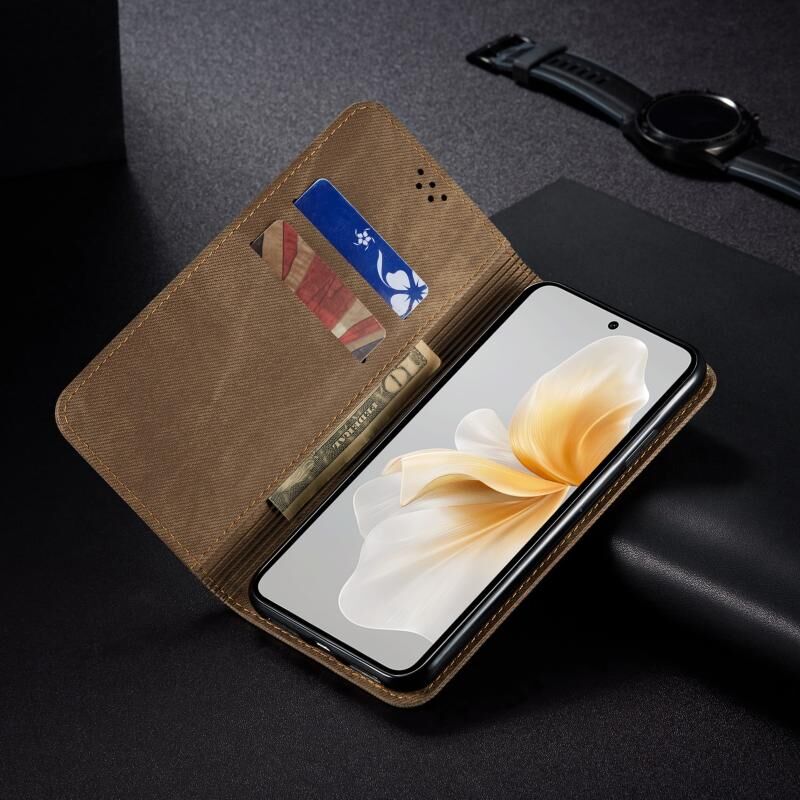 Για vivo S18e Denim Texture Flip υπόθεση τηλεφώνου δέρμα (Χακί)