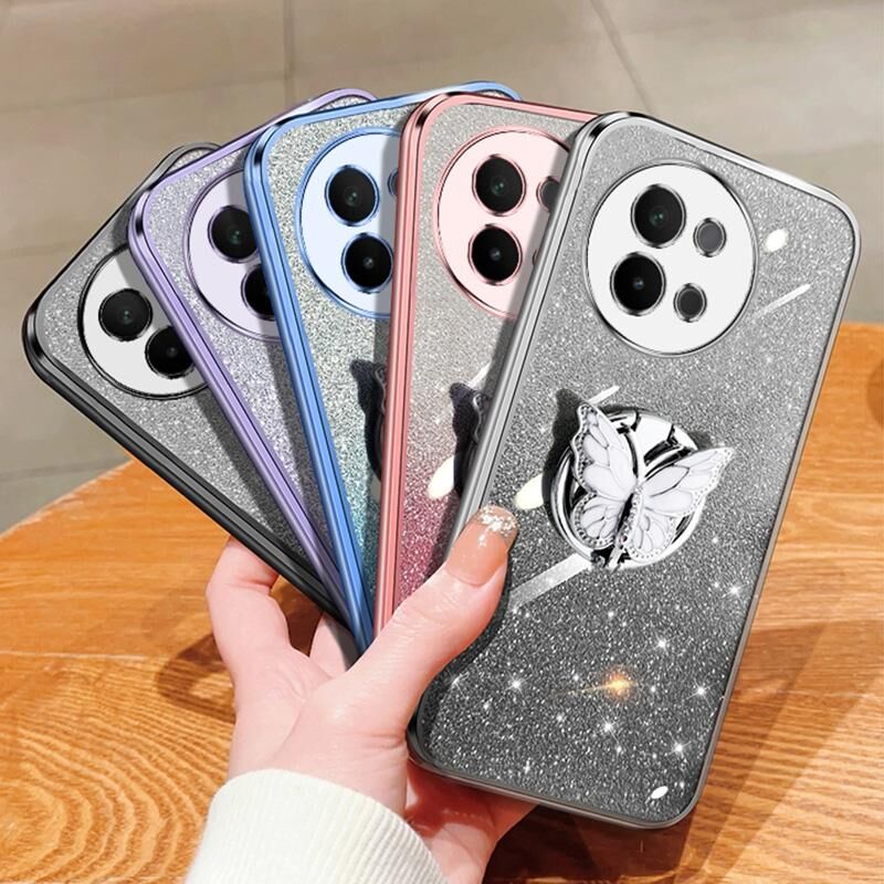 Θήκη τηλεφώνου TPU με επιμετάλλωση, διαβαθμισμένη λάμψη, πεταλούδα για vivo S18e (Ασημί)