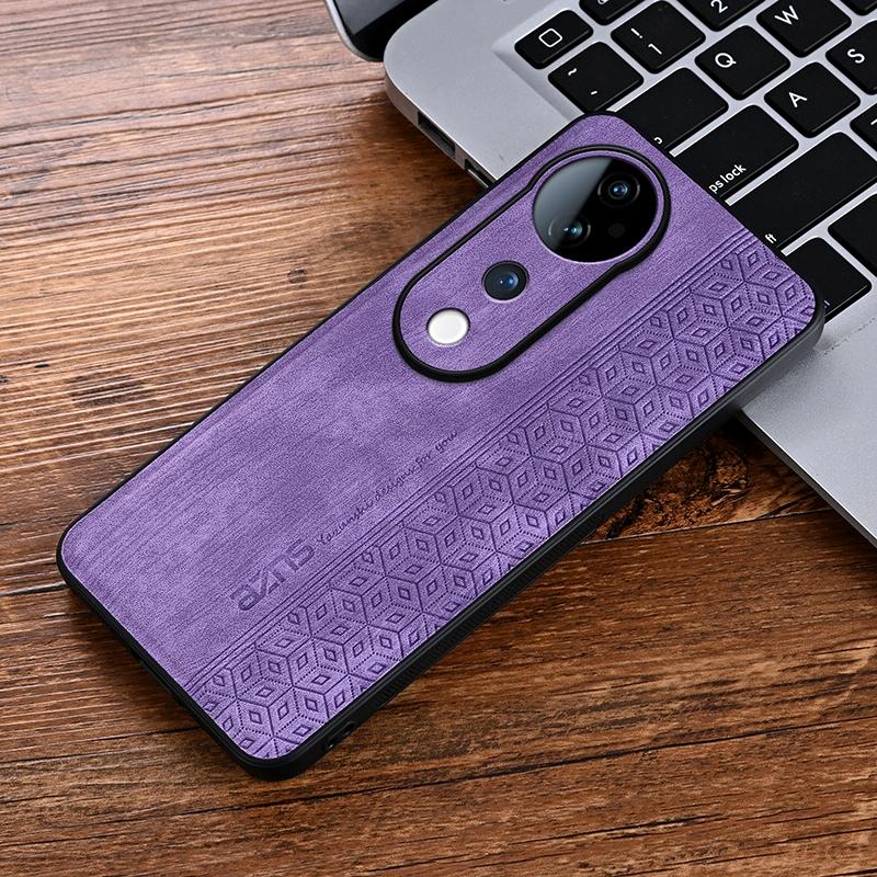 Θήκη τηλεφώνου με ανάγλυφη υφή δέρματος για vivo S19 AZNS 3D (Καφέ) (Μωβ)