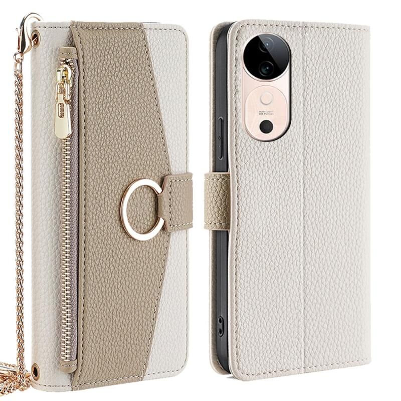 Θήκη τηλεφώνου για vivo S19 Crossbody με δέρμα υφής λύτσι (Μπλε)