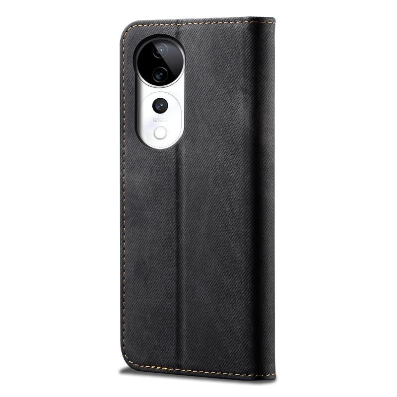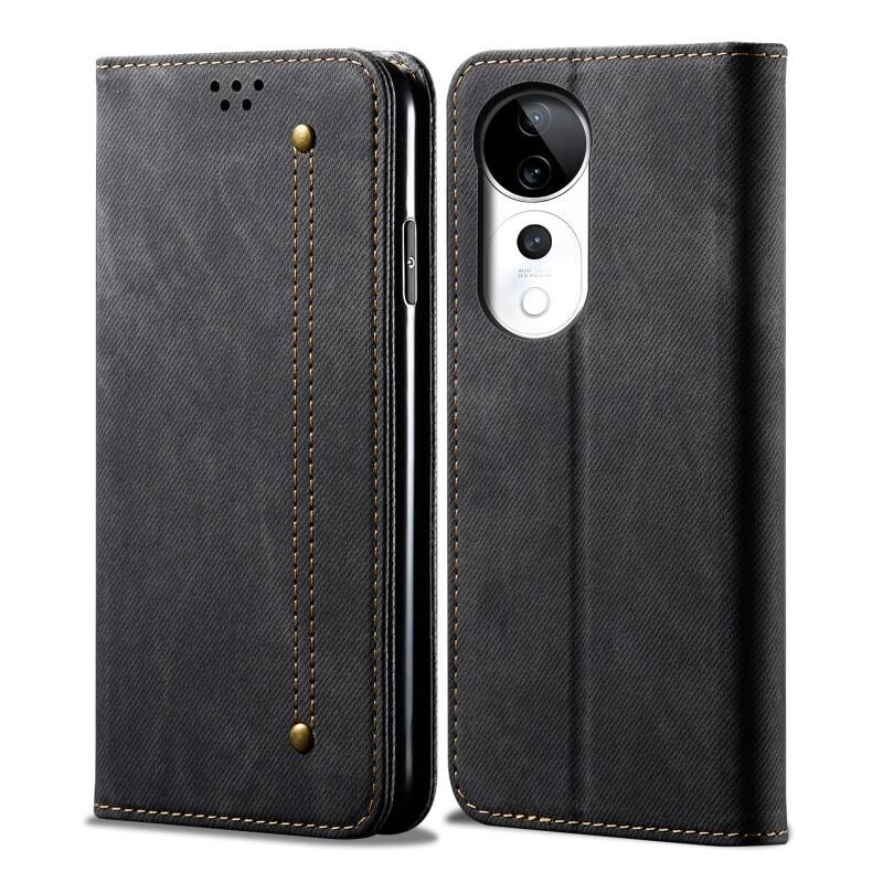 Θήκη τηλεφώνου από δέρμα με υφή denim για vivo S19 (Μαύρο)