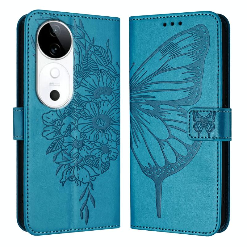 For vivo S19 Embossed Butterfly Leather Phone Case(Blue)