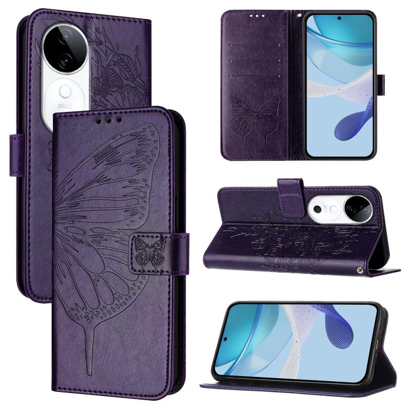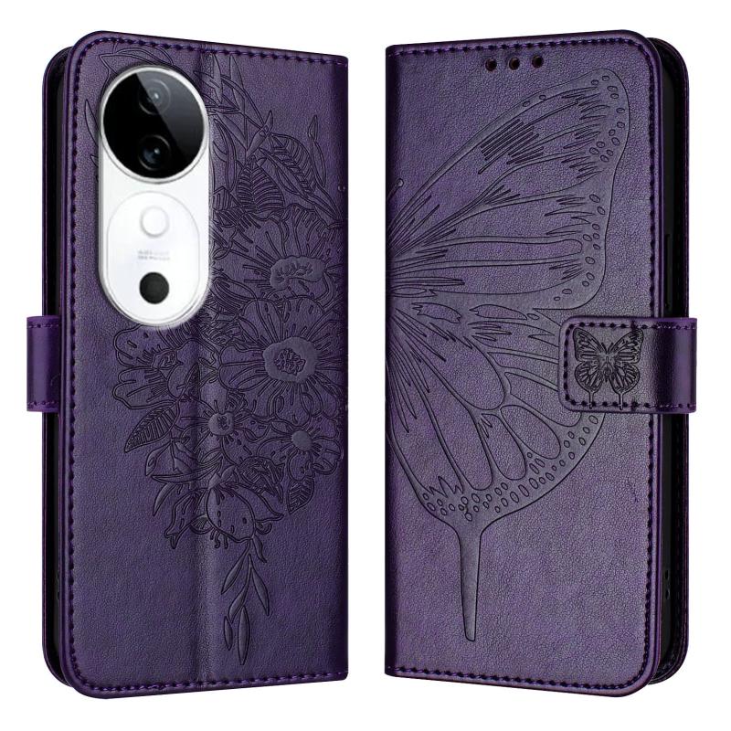 For vivo S19 Embossed Butterfly Leather Phone Case(Dark Purple)