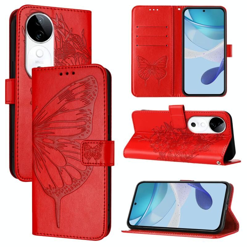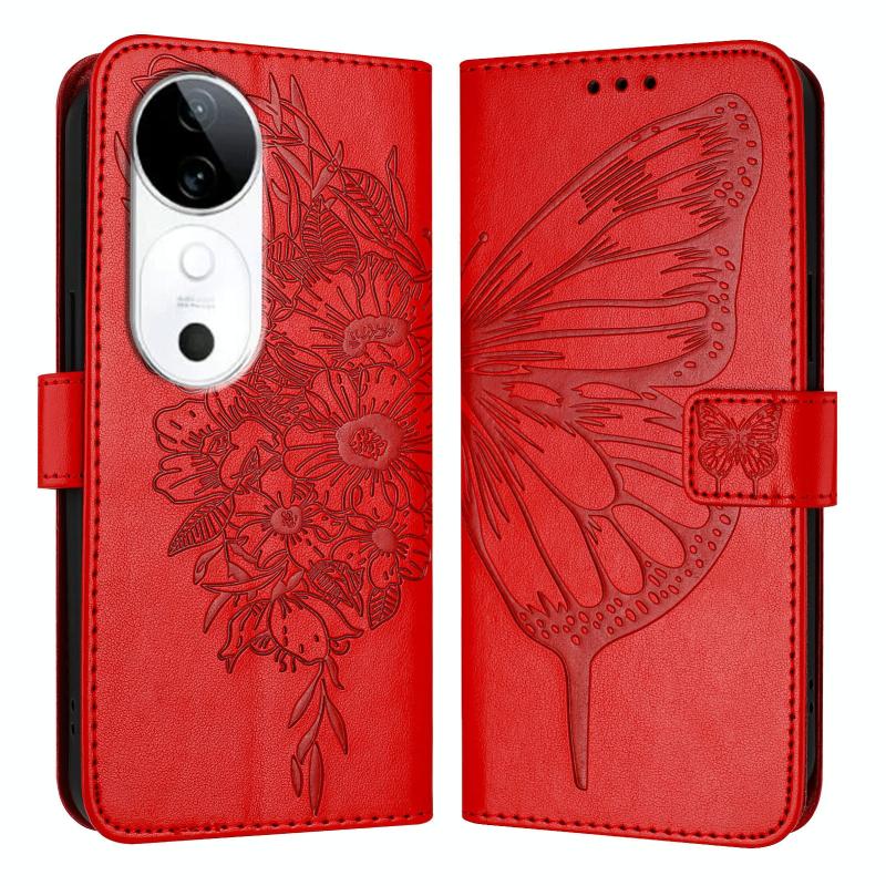 For vivo S19 Embossed Butterfly Leather Phone Case(Red)