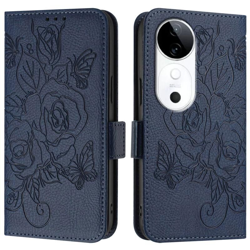 Θήκη τηλεφώνου δερμάτινη με ανάγλυφο σχέδιο τριαντάφυλλου και προστασία RFID κατά της κλοπής για vivo S19 (Πράσινο)