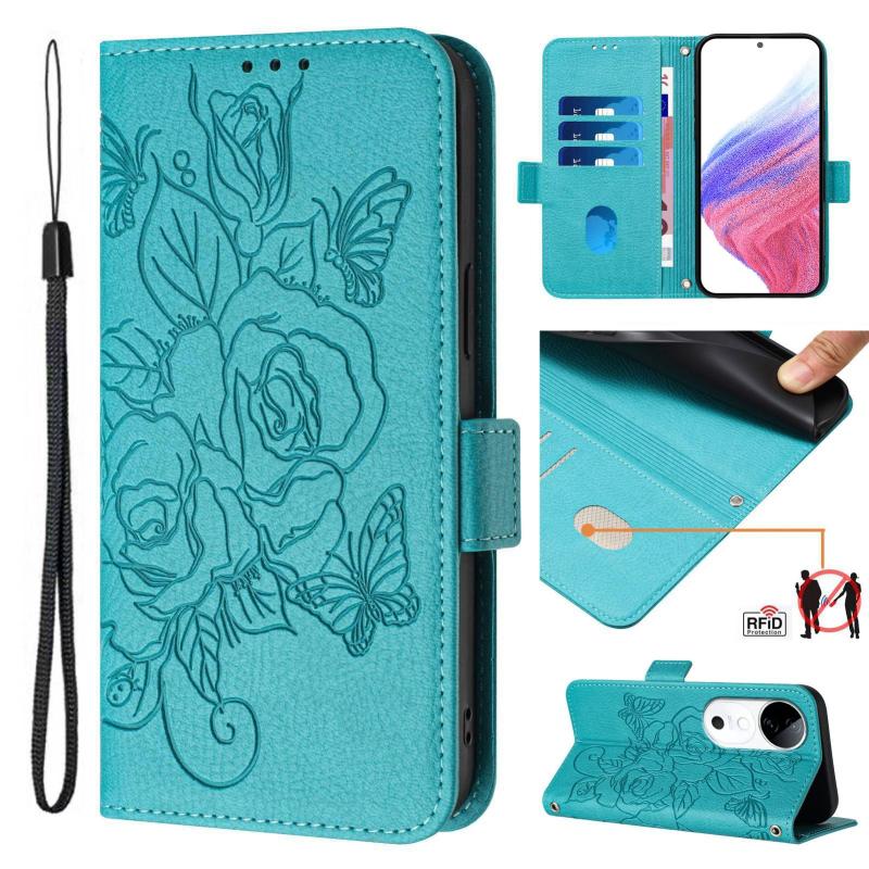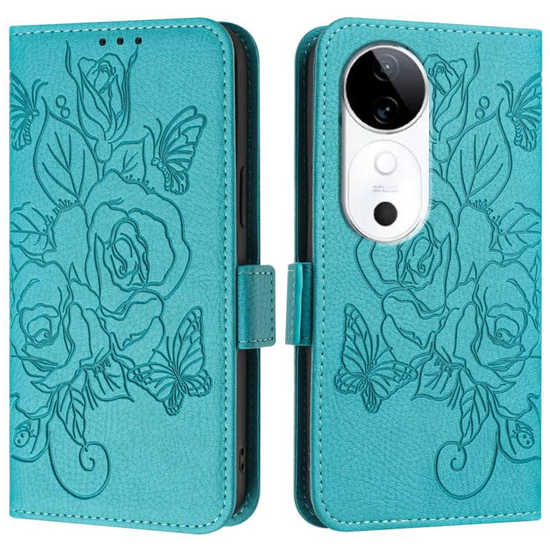 Θήκη τηλεφώνου δερμάτινη με ανάγλυφο σχέδιο τριαντάφυλλου και προστασία RFID κατά της κλοπής για vivo S19 (Πράσινο)