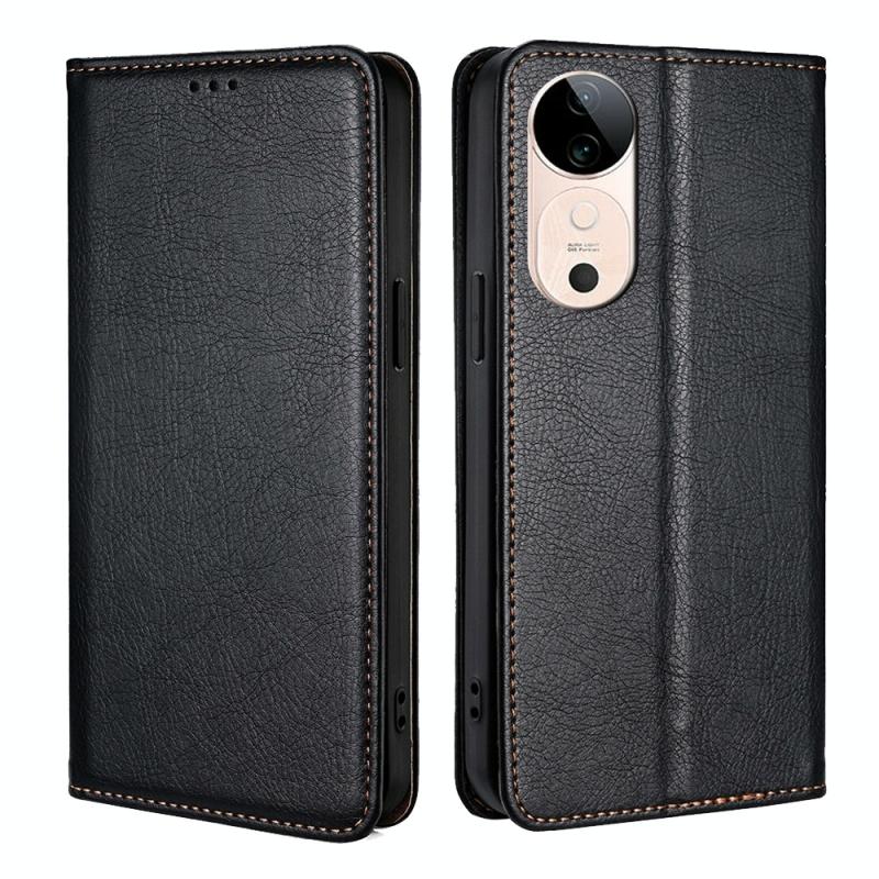 Θήκη τηλεφώνου για vivo S19 Gloss Oil Solid Color Magnetic Leather (Μαύρο)