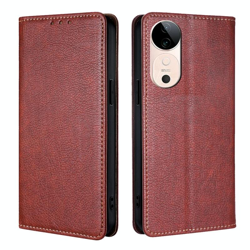 Θήκη τηλεφώνου για vivo S19 Gloss Oil Solid Color Magnetic Leather (Καφέ)