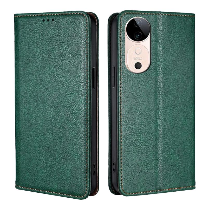 Θήκη τηλεφώνου για vivo S19 Gloss Oil Solid Color Magnetic Leather (πράσινο)