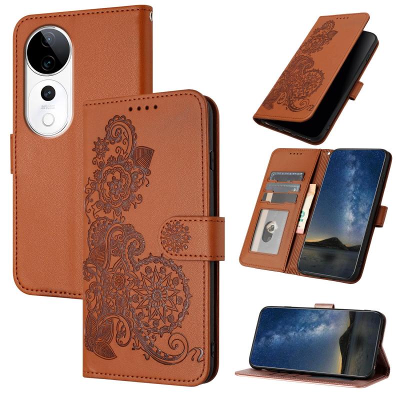 For vivo S19 Pro Datura Flower Embossed Flip Leather Phone Case(Brown)