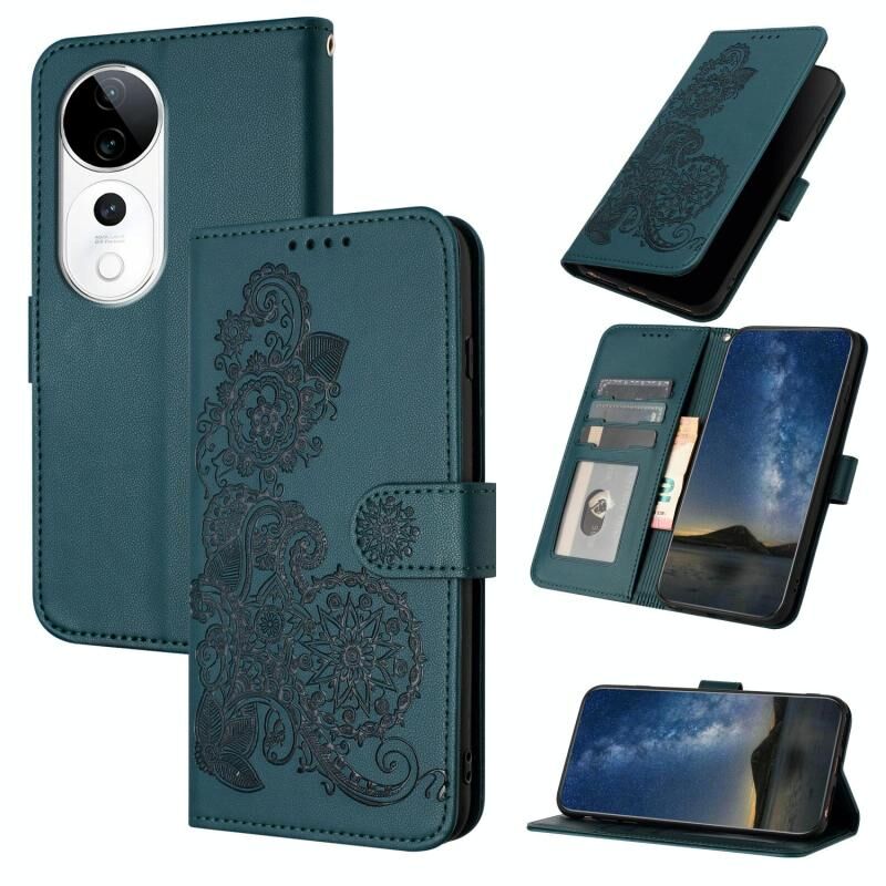 For vivo S19 Pro Datura Flower Embossed Flip Leather Phone Case(Dark Green)